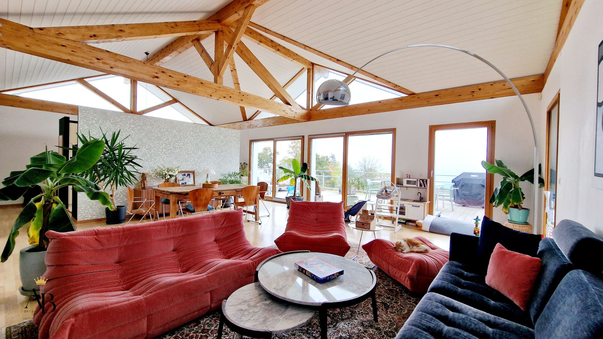 A panoramic view of the lake, large bright living rooms with a beautiful fireplace, a fully equipped kitchen, magnificent terraces with lake and Mont Blanc views.